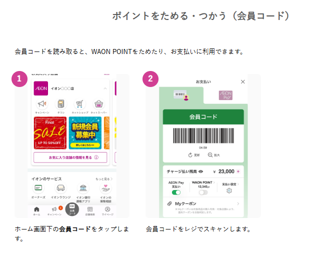 AEON Payは、WAONとの間で相互に残高の移行ができます。両者で残高移行ができることは、AEON Payを利用するメリットの1つといえます。