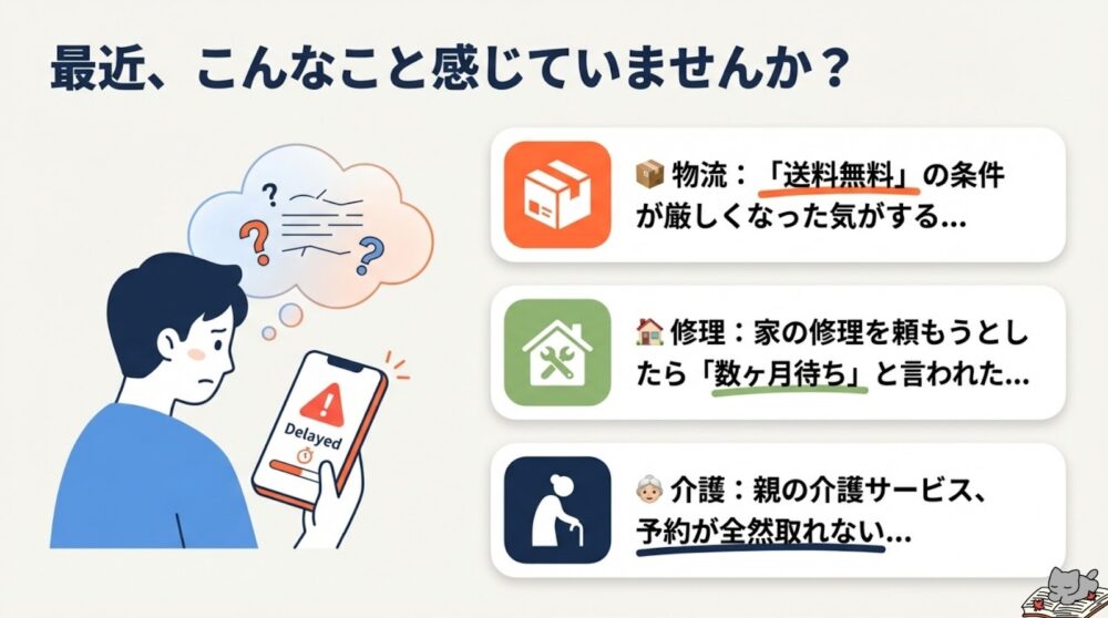 供給側の制約が強まる局面では、運べる量・運べる時間に限界が出やすく、結果として便利さや価格にしわ寄せが起きやすくなります。