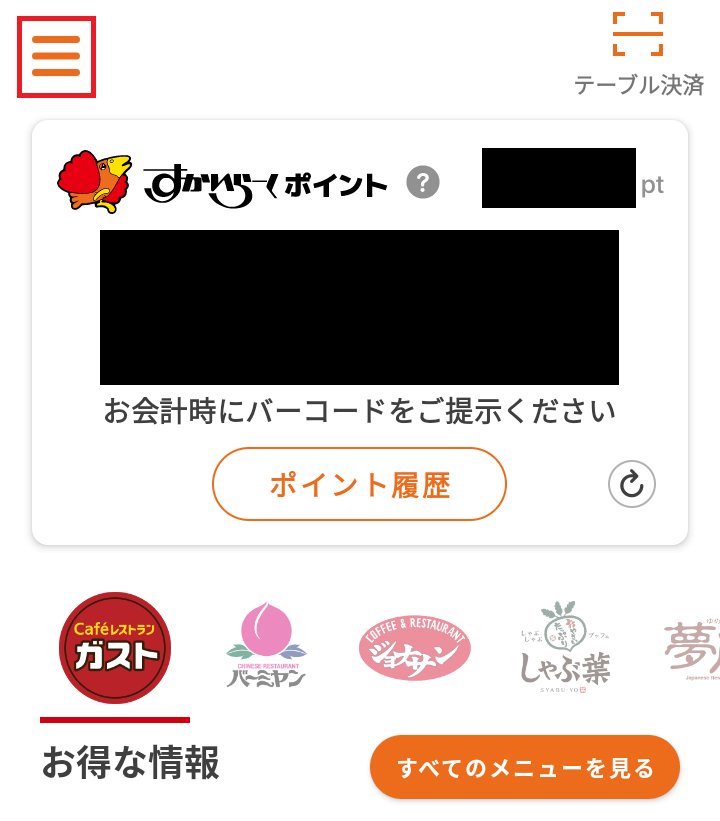 その方法とは以下のとおり、すかいらーく公式アプリを操作することです。(※今後、利用できない可能性があります。)