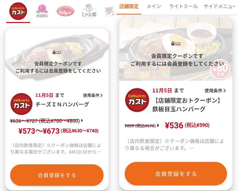 よりお得にガストで食事ができるため、会員登録することをおすすめします。
