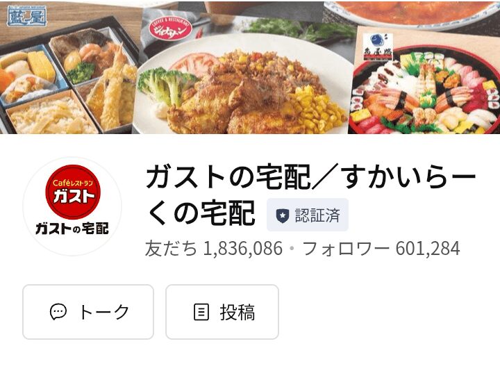 LINE「ガストの宅配/すかいらーくの宅配」(宅配のみ)