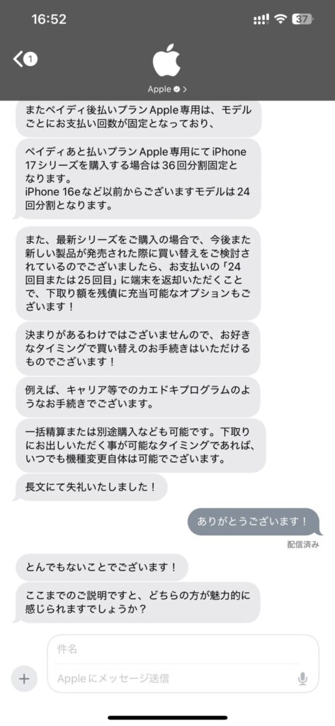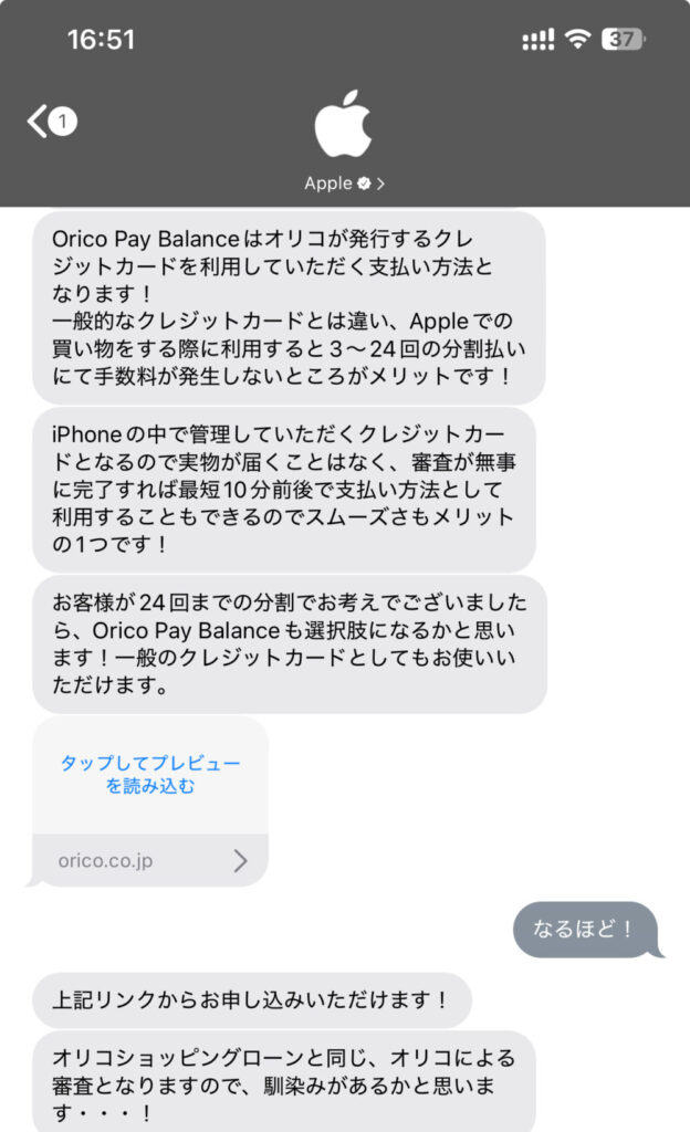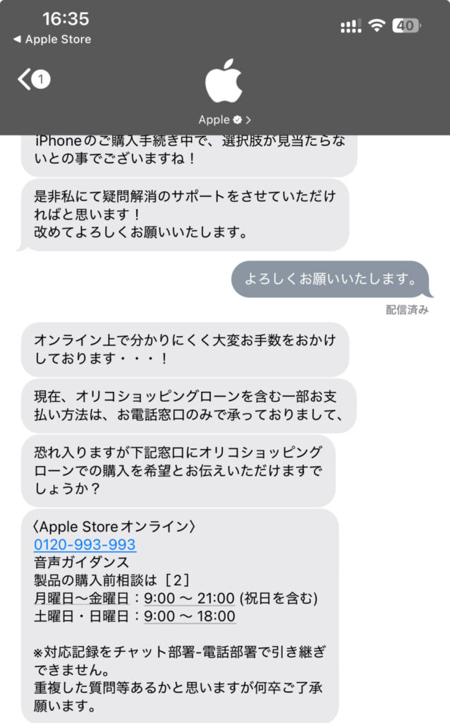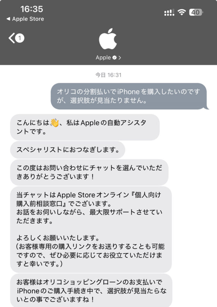iPhone17を購入しようとApple Storeで手続きを進めていたのですが、いつも利用しているオリコ分割払い(オリコショッピングローン)が選べなくなっていました。