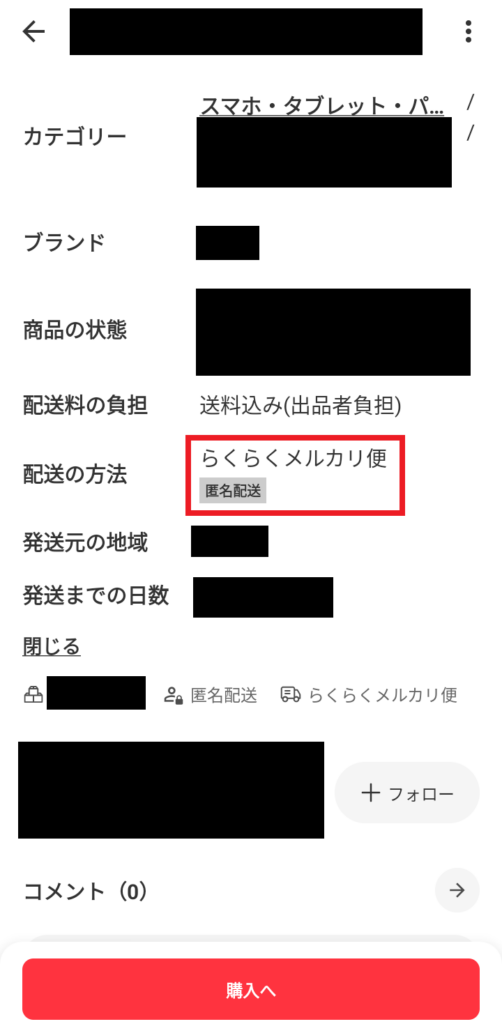 個人情報を知られずに取引したい場合、匿名配送を選択している出品者の商品を購入するよう心がけましょう。
