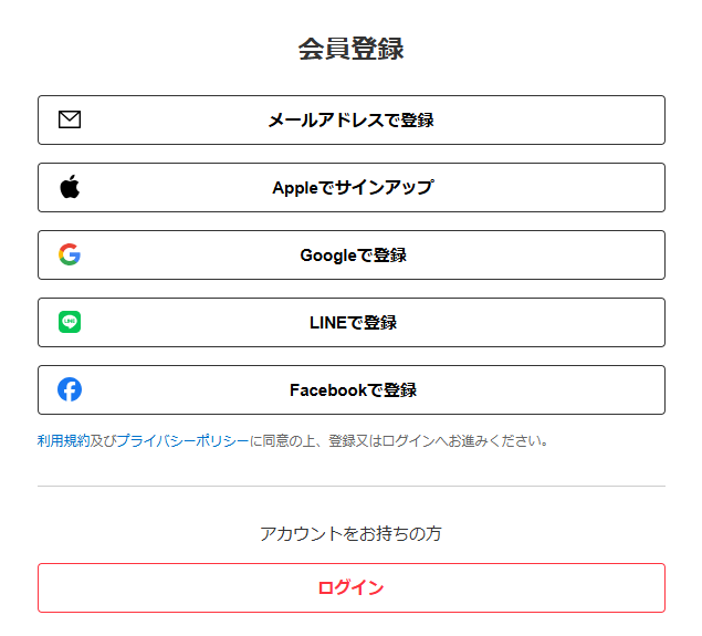 iPhoneなどのApple端末から登録する場合、Appleアカウントも選択可能です。